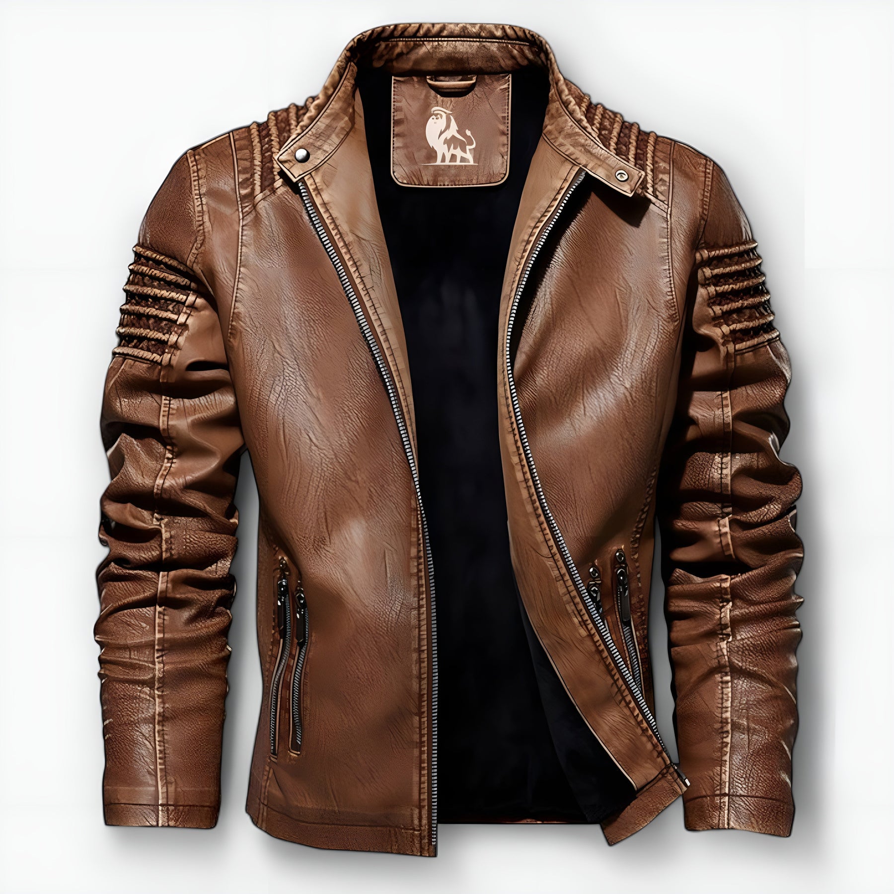 Gemaakt van duurzaam PU-leer, is het jasje ontworpen om bestand te zijn tegen water, krassen en slijtage. Het is een stuk dat gemaakt is om lang mee te gaan, zelfs als je het vaak draagt — het behoudt zijn onberispelijke uiterlijk.